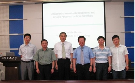 广濑壮一教授为广大师生作了关于逆解波动方程构建扫查图像获取缺陷形状的超声波无损检测新方法的学术讲座,并就无损检测与评估的新概念展开了讨论。出席此次学术交流会议的还有北京航空航天大学周正干教授。