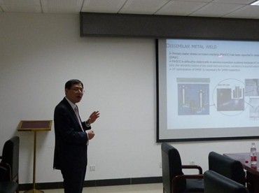 学术交流期间,宋教授为我校师生作了关于韩国成均馆大学无损评估中心相关科研(包括超声、涡流等)的介绍以及核电异种钢焊接接头的超声检测建模的学术报告。并就无损检测与评估的新概念展开了讨论。出席此次学术交流会议的还有北京航空航天大学周正干教授。