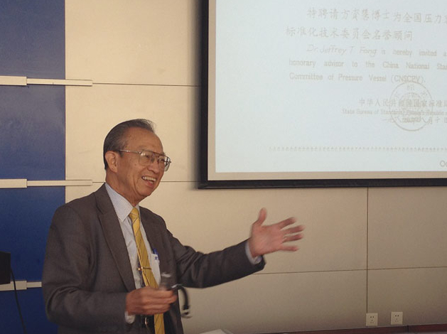 方博士是美国材料与试验学会(ASTM)以及美国机械工程师协会(ASME)的资深会员。曾任ASTM-E9.01疲劳研究分委员会(Fatigue Research Subcommittee)主席,及ASME压力容器及管道分会主席。1985年,中华人民共和国的国家标准局聘请方博士为全国压力容器标准化技术委员会名誉顾问。1993年,美国机械工程师学会(ASME)授予方博士最高荣誉的压力容器奖章。出版的学术报告及论文逾一百篇。主编的科技会议议程书十六册。 |