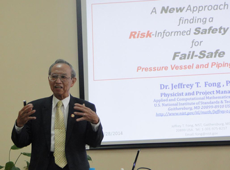2014年8月29日,应机械与车辆学院徐春广教授邀请,美国国家科技标准研究院资深学者、美国费城德雷塞尔与加州斯坦福两所大学客座教授、美籍华人方资慧博士来我校先进加工技术国防重点学科实验室进行访问交流。访问期间,方博士参观了机械与车辆学院的检测与控制研究中心,并为师生作了题为“A New Approach to finding a Risk-informed Safety Factor for Fail-Safe Pressure Vessel and Piping Design”的学术报告。方博士通过介绍“应用数学”、“应用物理”、“应用物理”三门科技理论,阐述“无损探伤数量工艺技术学”的内涵。同时,方博士还为我们展示了统计分析软件以及如何应用现代统计学结合统计分析软件进行实验设计。方博士的语言诙谐、幽默、生动,报告的内容引起与会师生的浓厚兴趣,展开了热烈的讨论。