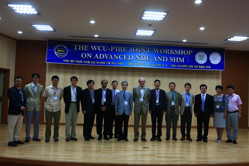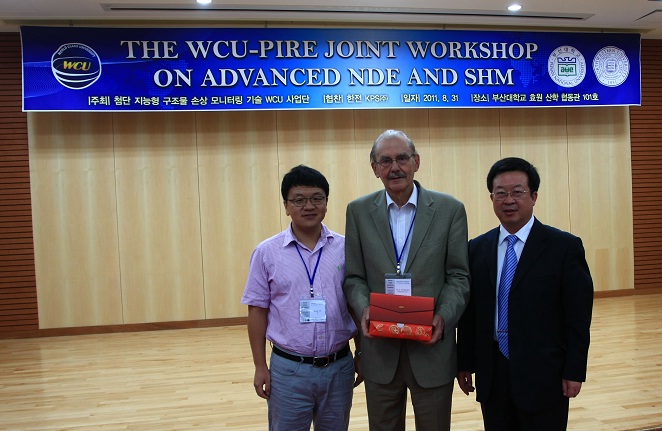 2011年8月30日至9月2日,徐春广教授与潘勤学博士应邀参加“2011年韩国釜山大学-美国西北大学先进无损检测评估与结构健康监测联合研究学术研讨会”,徐春广教授做了关于“超声显微技术”的学术报告,并与美国西北大学,两院院士获得者Achenbach教授作了深入的探讨和交流。与会期间,应釜山大学赵允浩教授之邀参观了釜山大学超声无损检测实验室。