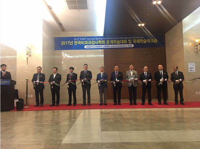 下图为徐春广教授参加2017年韩国无损检测春季会议暨国际学术交流大会开幕剪彩活动(左二)。